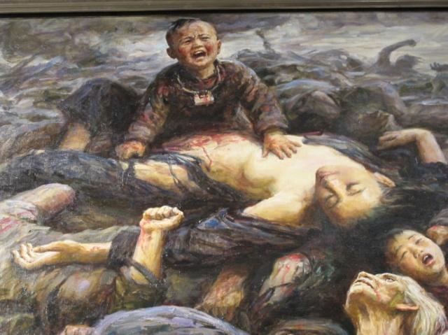 还有更为残忍的,如果女人怀孕,那些恶魔们就更为兴奋,他们用刺刀将肚子划开,然后把成型的、未成形的连着脐带的婴儿用刺刀挑起,在奄奄一息的母亲面前跳舞尖叫,女人撕心裂肺的呼喊,只会助长他们内心的兴奋,最后连着男人一起,用他们的武士刀斩首。