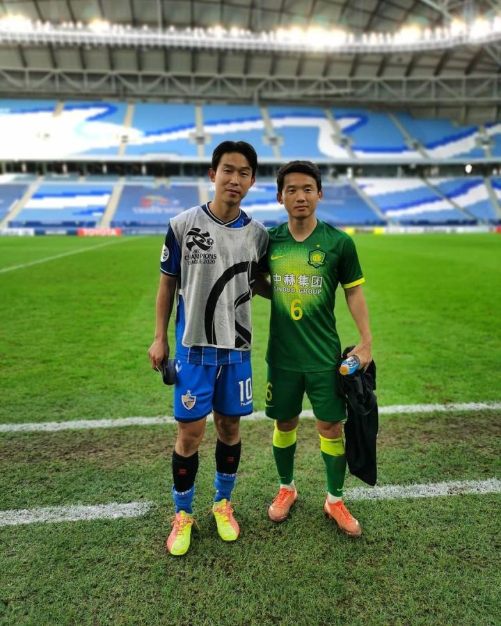 池忠国和尹比加兰曾在2016赛季和2017赛季在延边富德队做过队友。而在国安对阵蔚山的比赛中,池忠国和尹比加兰则是为各自的球队拼尽了全力。