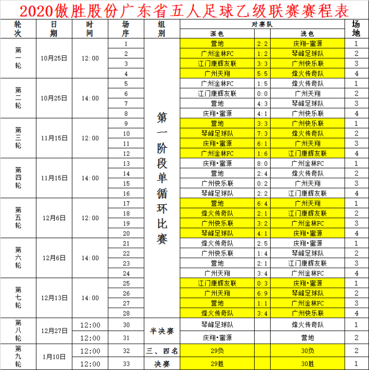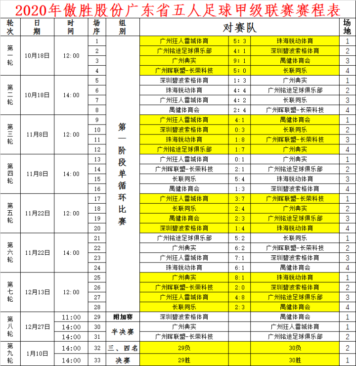 下一轮的比赛将在12月27号(周日)进行粤甲、粤乙和粤女五甲的第8个比赛日,也是半决赛和保级赛。中间休息一周,五哥开玩笑说:如果每个周日都踢球,老婆或女朋友就会生气!希望参赛球员利用间隙日多陪陪家人。比赛将全面进入淘汰赛阶段,赛况将会发生什么变化?谁夺冠?谁保级?让我们共同期待!!!
