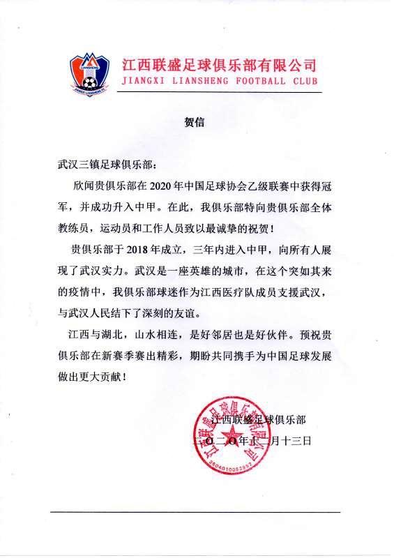 祝贺武汉三镇足球俱乐部成功冲甲