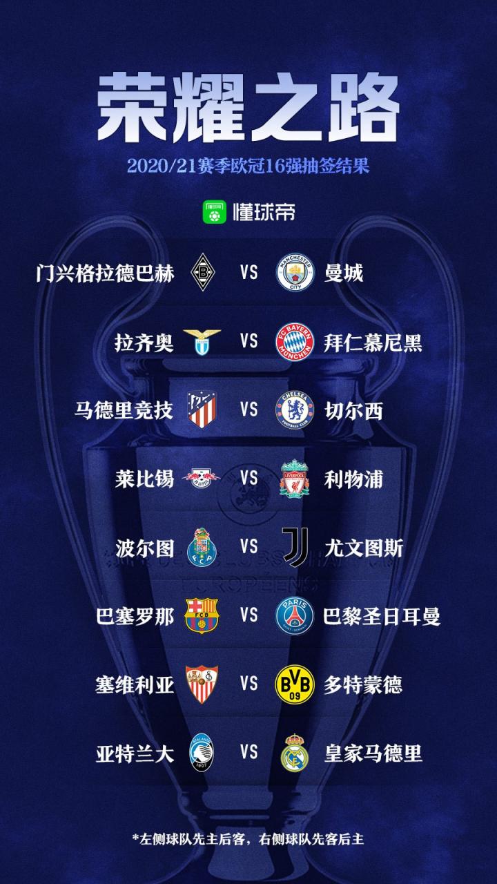 欧冠1/8决赛对阵(北京时间)