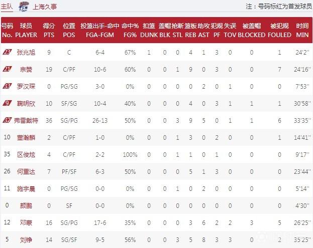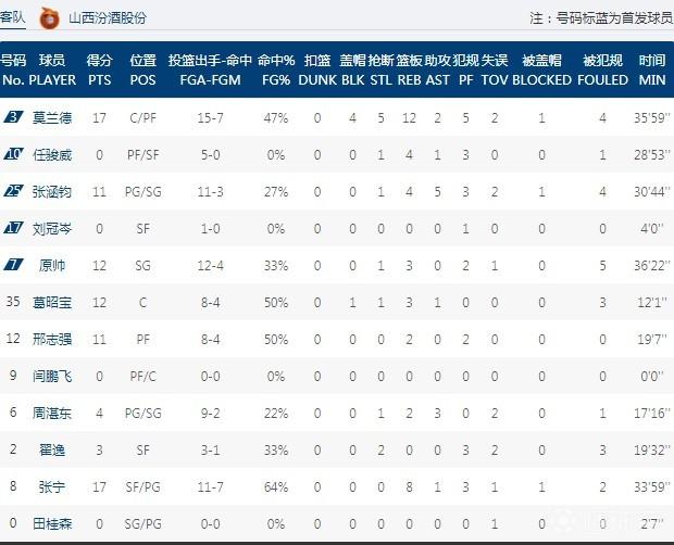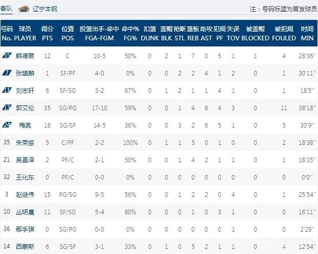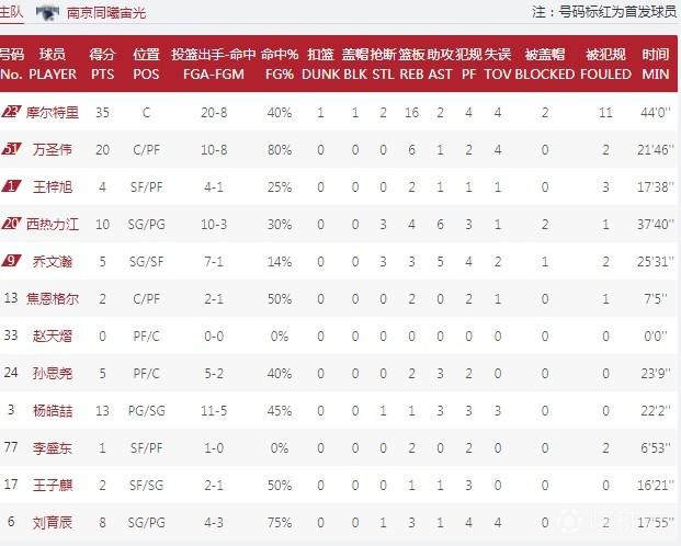 数据方面,同曦队这边,外援摩尔特里拿到35分16篮板,万圣伟出战21分钟则是砍下20分6篮板,西热力江得到10分4篮板6助攻3抢断的数据,此外杨皓喆则是有13分入账,其中三分球6中3;反观辽宁队这边,郭艾伦拿到35分4篮板6助攻,其中罚球15投全中,外援梅奥贡献18分6篮板3抢断,韩德君得到12分7篮板,此外赵继伟、丛明晨分别拿到15分、11分。
