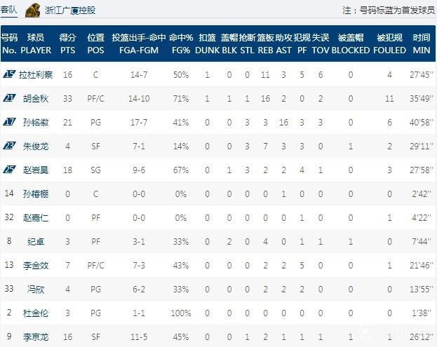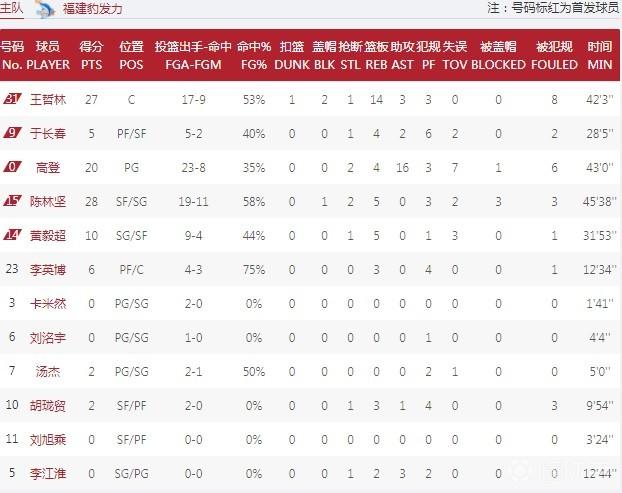 数据方面,福建队这边,外援高登砍下20分4篮板16助攻,但也有7次失误,而在三分线外则是6投全失,王哲林拿到27分14篮板,陈林坚砍下28分5篮板,此外黄毅超有10分进账;反观广厦这边,胡金秋砍下33分16个篮板,孙铭徽得到21分16次助攻3抢断,外援拉杜利察砍下16分11篮板,赵岩昊得到18分2篮板2助攻3抢断,李京龙三分线外10中5得到16分。