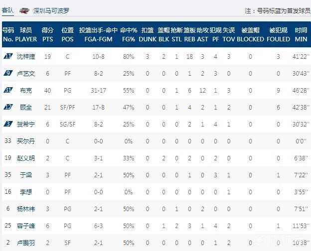 数据方面,上海队这边,外援弗雷戴特砍下36分9篮板5助攻3抢断的数据,外援邓蒙则是得到16分3篮板6助攻,宗赞则是得到19分9篮板,其中12分则是在第三节比赛得到的,此外刘铮也是拿到14分5篮板8助攻3抢断的全面数据;反观深圳队这边,沈梓捷得到19分18个篮板,外援布克砍下40分6篮板12次助攻,顾全砍下21分。