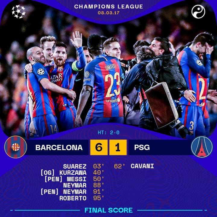 从2012/13赛季至今,巴萨和巴黎在欧冠中有过8次交手,最让人印象深刻的始终是2016/17赛季的1/8决赛次回合,带着首回合0比4的比分回到主场的巴萨,不可思议地在诺坎普实现了6比1的大逆转。如今四年过去,MSN组合只待成追忆,诺坎普奇迹中无比闪耀的内马尔早已成为巴黎的一员。