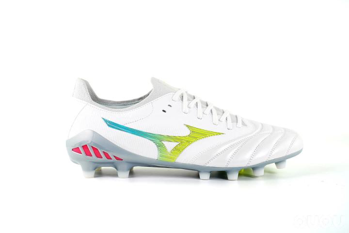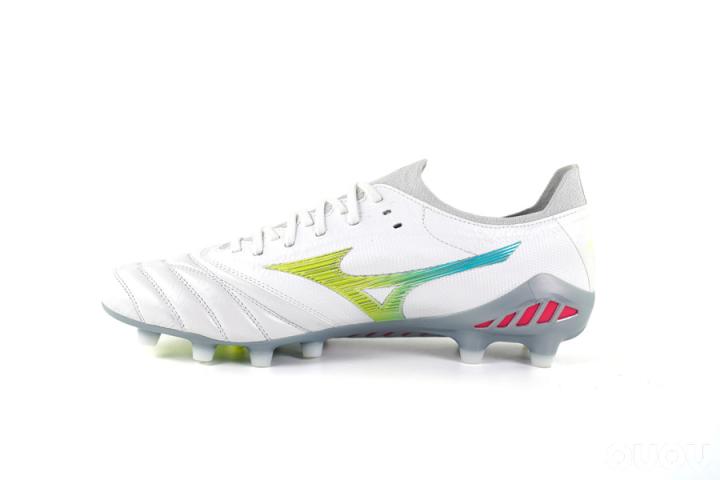 从它Morelia Neo III的前缀就可以看出来,这双鞋其实和Neo III有着密切关系,所以很多人第一眼看到它的时候一定会认为:这不就是Neo III的织物版?当然,你也可以这样通俗的去叫它,不过确实这种缺乏新意的做法让它的外观缺少一些吸引力,诚然你让美津浓去学PUMA那样大玩夸张设计这也不是他所擅长的。