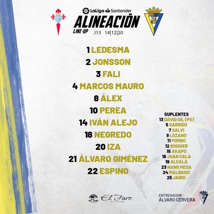 首发:莱德斯马、卡塞伦、马科斯-毛罗、法利、埃斯皮诺、佩雷亚、荣松、亚历克斯-费尔南德斯、阿莱霍、内格雷多、阿尔瓦罗-希门尼斯