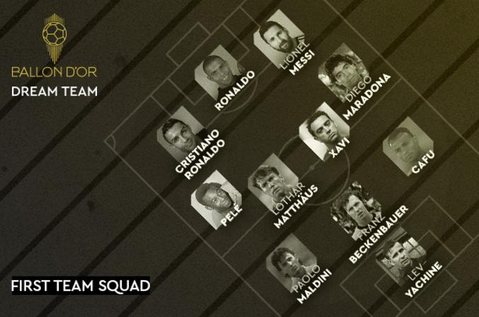 《法国足球》的阵容:雅辛/卡福、贝肯鲍尔、马尔蒂尼/马拉多纳、哈维、马特乌斯、贝利/梅西、罗纳尔多、C罗(图三)