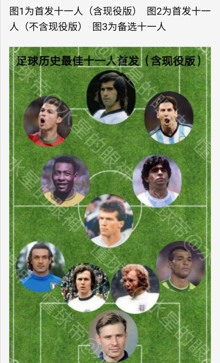 我的阵容:雅辛/卡福、博比摩尔、贝肯鲍尔、马尔蒂尼/马拉多纳、马特乌斯、贝利/梅西、盖德穆勒、C罗(图二)