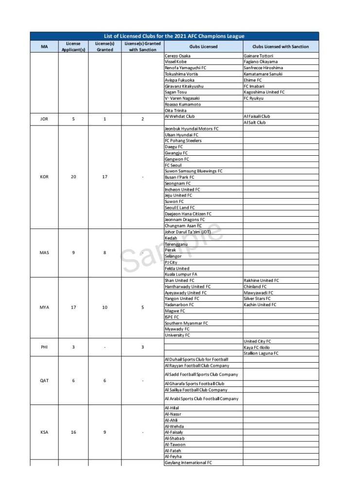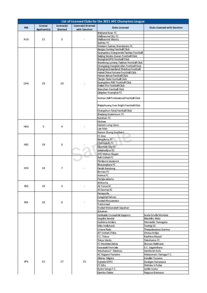 亚足联发布取得2021年亚冠牌照的联赛球队名单。...古徳莉利安 @懂球帝2020-12-16 22:52亚足联发布取得2021年亚冠牌照的联赛球队名单。 按规则有一个直通小组赛名额的朝鲜并没有球队取得牌照,因此基本可以确定下赛季不会有朝鲜球队参加亚冠。 另一个值得注意的是东亚技术积分第六的菲律宾,本有1+1个亚冠名额,但三只有牌照球队赛列斯、卡雅和马拉古那处于被制裁一栏,下赛季能否顺利参加亚冠不得而知。展开更多