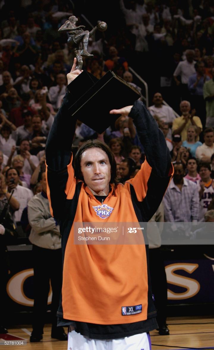 纳什的成就证明了机遇的重要性。第二次效力太阳期间,他携手德安东尼和小斯,高居跑轰大旗,在NBA掀起了一场战术革命,并蝉联MVP,再次证明了控卫的确拥有化腐朽为神奇的能力。