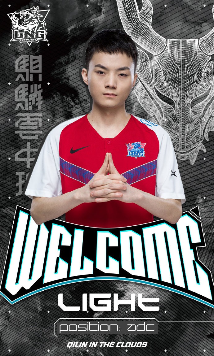 LNG.Light(王光宇)选手于2019年末正式调至LNG英雄联盟一队,并随队征战2020年春夏赛季。16岁登顶韩服,经过职业联赛几年间的历练,作为团队中的新生力量,Light通过在比赛和训练中不断的学习成长,逐渐成为队伍中稳定的输出点。