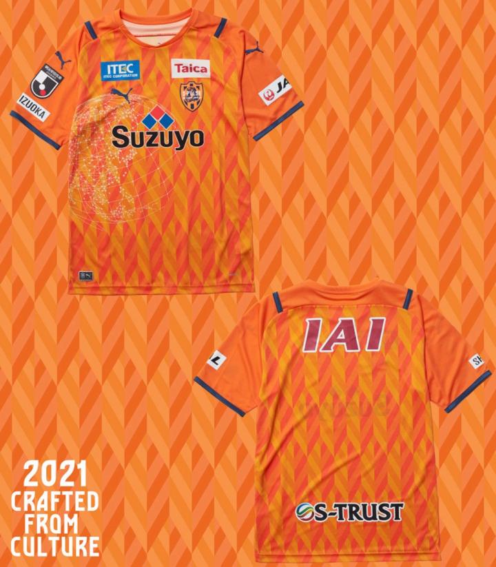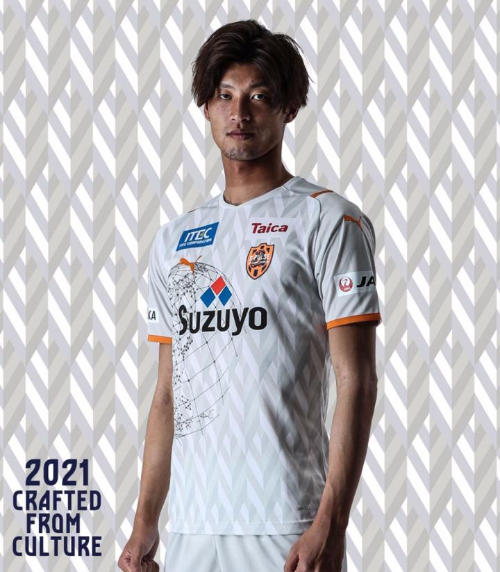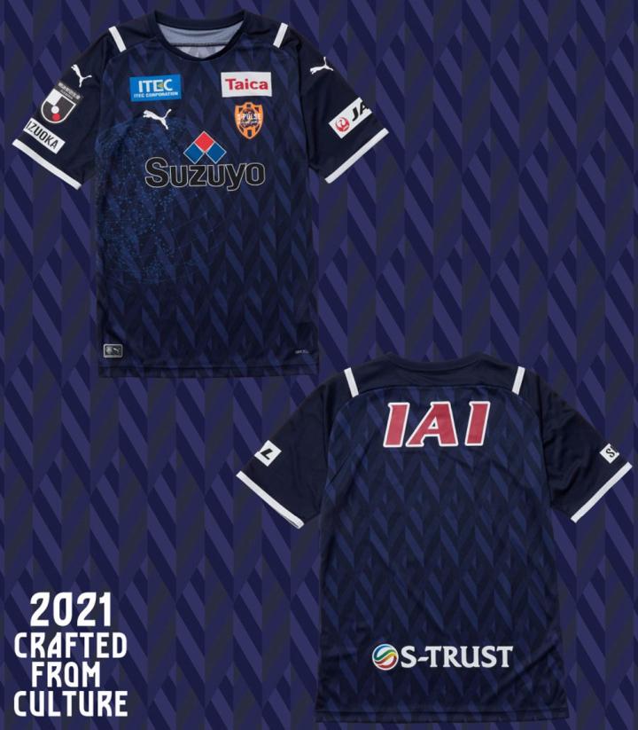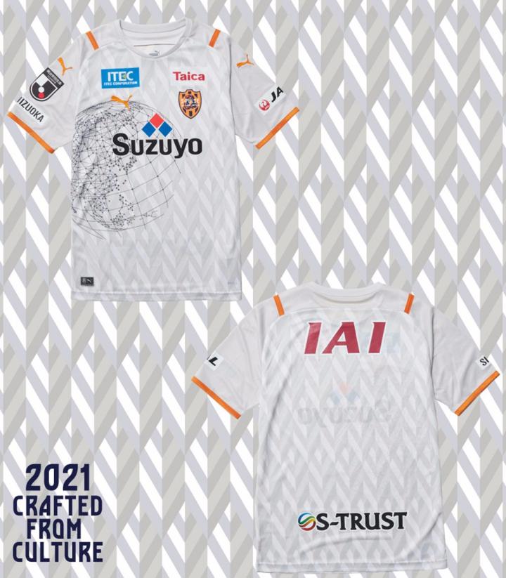 清水鼓动2021赛季主客场球衣延续球队名扬四海的“地图模式”这一经典球衣设计。围绕“CRAFTED FROM CULTURE”这一理念打造的球衣还加入受静冈县茶叶产业所启发的独特球衣图案。