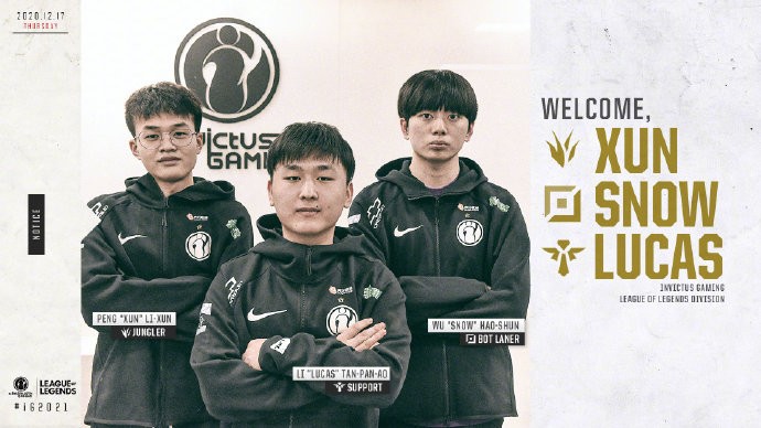 iG官宣:打野XUN、辅助Lucas、ADC选手Snow上调至一队