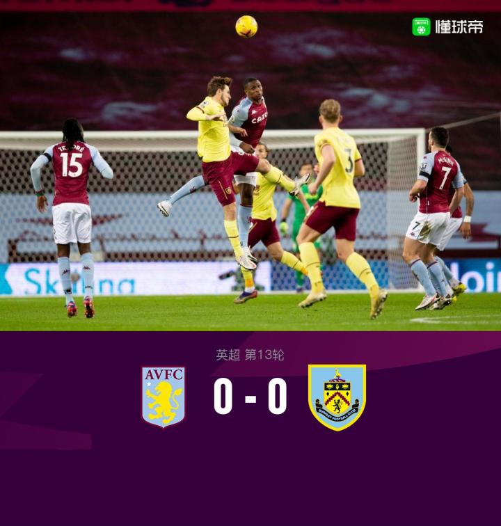 北京时间12月18日2:00,英超联赛第13轮的一场较量,阿斯顿维拉坐镇主场,迎战伯恩利。上半场,艾尔-加齐、豪斯分别中框,双方暂时0-0战平;下半场,维拉创造了多次机会,也没有完成破门。最终阿斯顿维拉主场0-0和伯恩利握手言和。