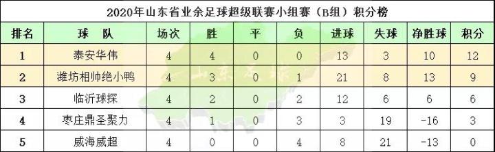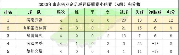 2020年山东省业余足球联赛小组赛成绩、积分榜