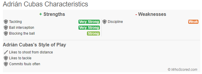 库瓦斯不只有抢断,他的拦截,一对一争夺球权能力都相当突出,虽然不算强壮,但个子较矮的库瓦斯有着低重心和下盘稳的优势,他的核心力量在一对一的对抗下也不会处于太大劣势,他就像一条小斗牛犬一样,善于利用自己的身体去怼去扛对手,让对手在一对一的对抗下失去平衡。同时,覆盖面积也是库瓦斯的优势,至少在防守端,他可以说是无处不在的。某种意义上,库瓦斯会让人想到坎特。比赛任何时候,他都全情投入。