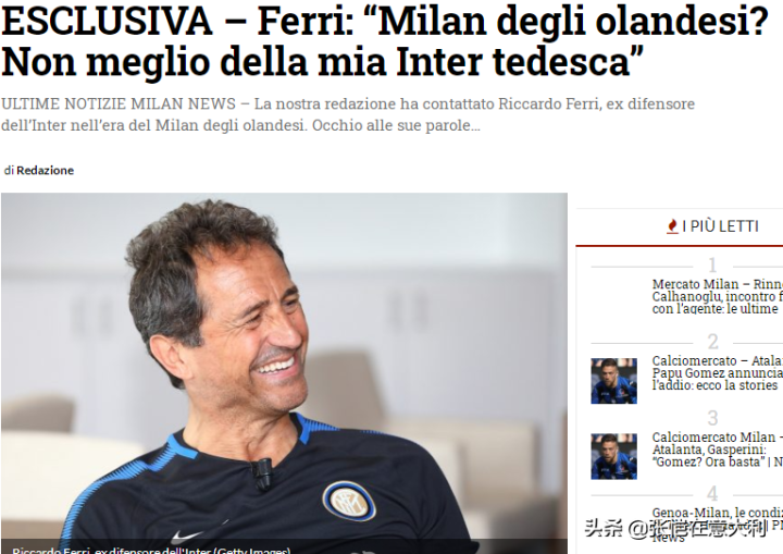 前国米意大利国脚后卫里卡多·费里(90世界杯主力)接受“米兰星球网”采访,往事重提对比道:“荷兰人的米兰超级杰出,因贝卢斯科尼强力注资,比那个时代的国米更有钱。我们的主席佩莱格里尼也尽到努力,塑造出不弱于米兰的阵容,特别在竞争力超强的意甲、有马拉多纳的意甲。这么说吧,荷兰人米兰比德国人的国米花费更高,但能力上并不占优。荷兰人、德国人是舆论喜欢的称谓,别忽视那时的意大利本土球员根基。”