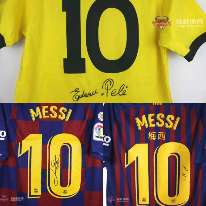 今天铁杆体育给大家分享的球衣有三件,其中包括18/19赛季官方中文印字版的梅西签名球衣、19/20赛季巴萨主场版梅西签名球衣以及1970年世界杯巴西复刻版贝利签名球衣。