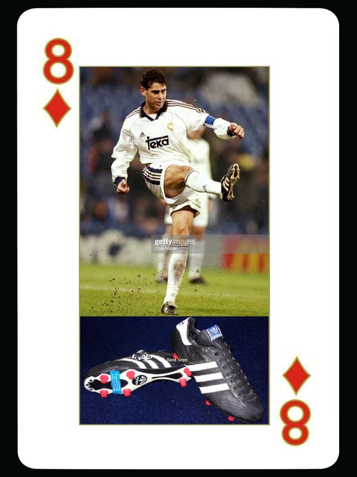 不过有一个例外,那就是1978年的adidas world cup,这款鞋是adidas近代足球鞋的开山鼻祖,当年由贝肯鲍尔代言,相比同期其他品牌的球鞋,技术至少领先10年以上,也基本奠定了之后20年adidas球鞋的设计基础,在2008年还被adidas复刻过。不过今天我们介绍的使用这款鞋的球星却是当年的皇马队长耶罗,他1999年居然穿过world cup 1978,当时应该没有复刻,但是一双20年的球鞋还能实战确实有点夸张,只能说西德产老古董真够强劲,耶罗当年是adidas猎鹰的代言人,他在1996年还和德塞利、萨默尔一起拍摄过adidas猎鹰3的广告,德塞利是铁球,萨默尔是火柴,耶罗是火车,不知道有没有人还记得。