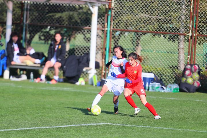 北京时间12月23日14:00,2019-2020年全国青少年校园足球联赛大学女子超冠联赛决赛,北京师范大学VS上海体育学院的比赛正式开始。北京师范大学身着白色球衣,上海体育学院身着红色球衣。