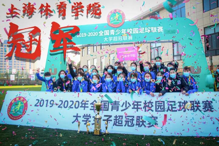 95分钟,裁判吹响终场哨,比赛结束——上海体育学院2比1北京师范大学,获得2019-2020年全国青少年校园足球联赛大学女子超冠联赛冠军!