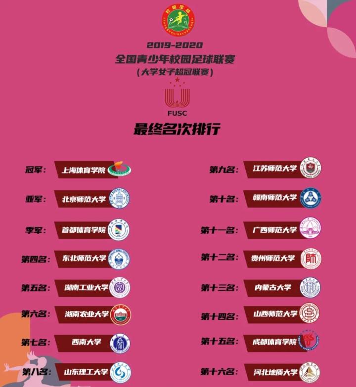 与此同时,其他各支球队的最终排名也已经决出。比赛结束后,赛事组委会举行了颁奖仪式和闭幕仪式。至此,2019-2020年全国青少年校园足球联赛大学女子超冠联赛也圆满落幕。