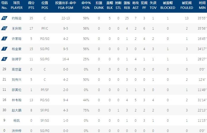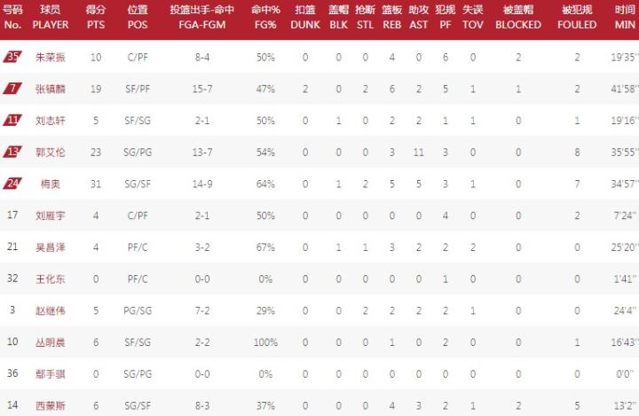 数据方面,梅奥砍下31分5板5助攻,郭艾伦拿下23分11助攻,张镇麟得到19分6板;青岛这边,约翰逊空砍35分25板7助攻5封盖,王庆明贡献17分。