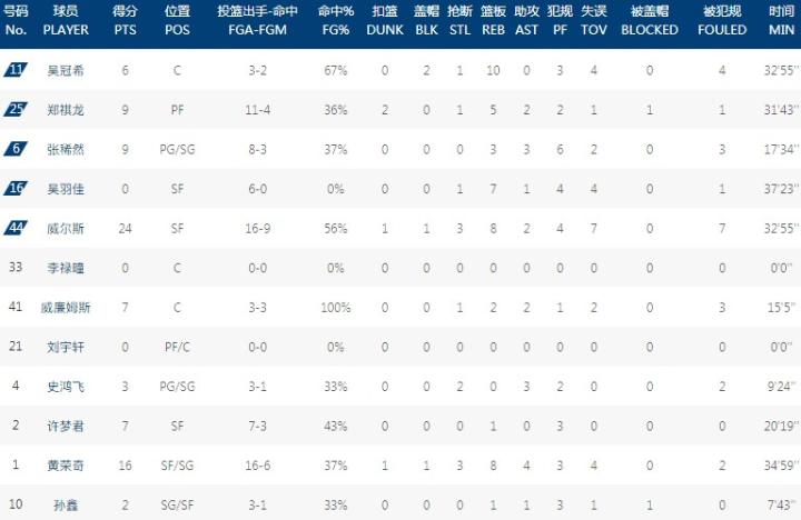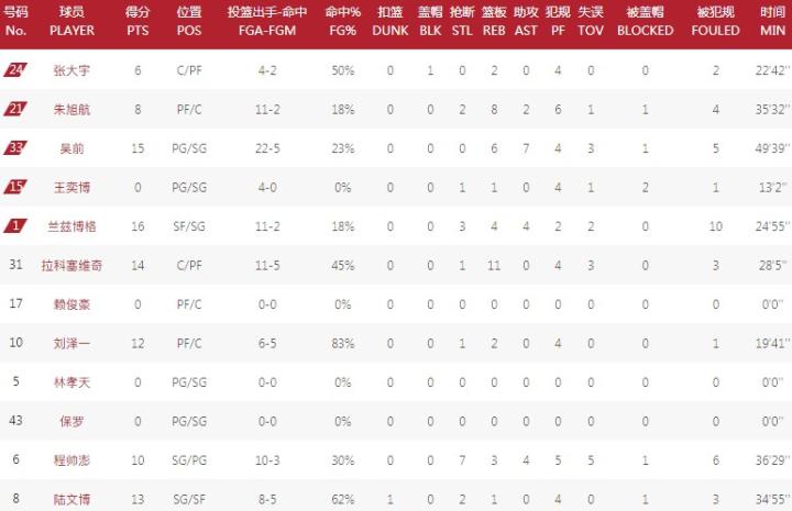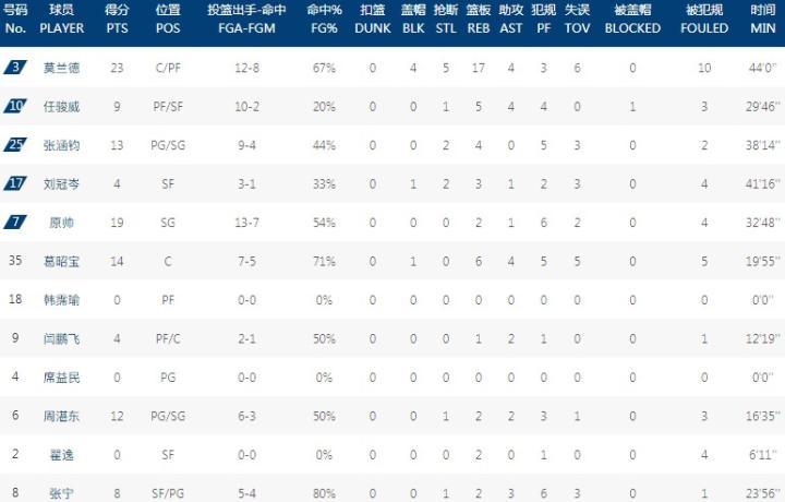 数据方面,莫兰德砍下23分17板,原帅拿下19分;浙江这边,吴前得到15分6板7助攻,兰兹博格贡献16分。