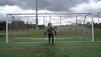 所以,当我们把腿向后摆起来,看起来像是要大力射门,守门员常常会调整双脚,扎在地上。