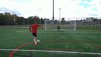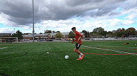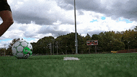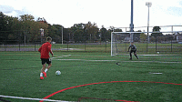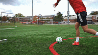 下面是几个帮助我们掌握挑射的几个技巧,首先让球在我们身前滚动,当我们1V1面对守门员的时候,要先这样做,因为球有了向前滚动的动量,起球会容易很多。