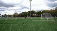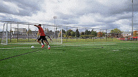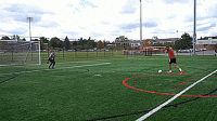 另外,如果我们想靠得更近一些,而守门员迅速向我们冲过来,我们可以让对方觉得我们要绕过守门员,然后我们就可以挑起球,挑射幅度可以小一些。