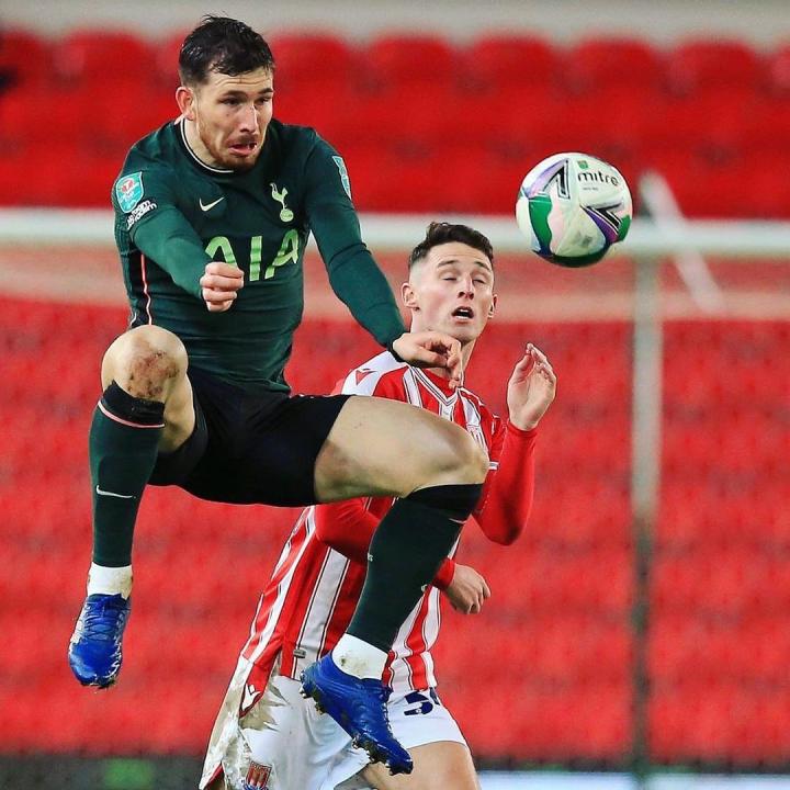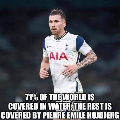 在率队3-1击败斯托克城挺进英联杯半决赛后,热刺球员赫伊别尔在个人社交媒体上晒出了一张自己在比赛中的梗图。