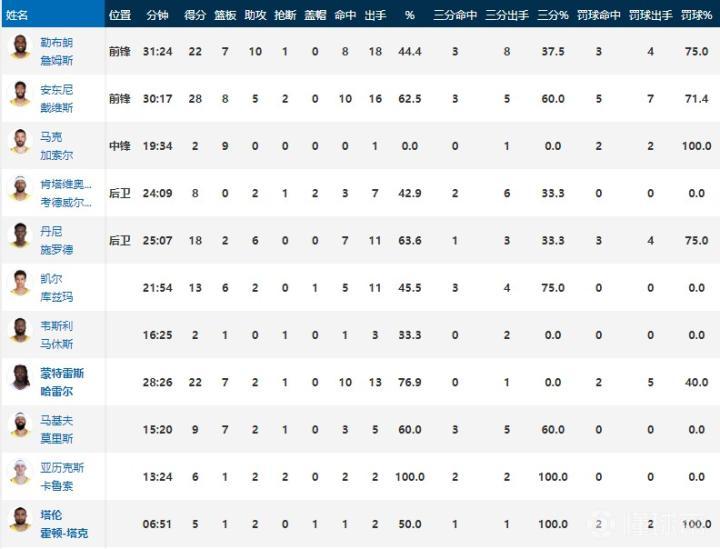 易边再战后詹姆斯延续状态,进攻端连续单打东契奇得手,帮助湖人继续拉开比分,中段两队外线延续手感火热对飚,伯克本节飚中3记三分,库兹马和浓眉则及时回应,末段东契奇找回手感连中三分,三节结束,湖人99-85依然领先14分。