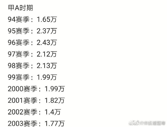 回顾这些年的观众上座率,94到98年是中国职业联赛第一个辉煌期,但是从1999年开始,中国足协开始折腾,从1999年的抽签69事件,2001到2005取消升降级,04年国脚限额,03年的排名不看积分,05年的U20政策和双教练政策,07年上座率不够罚钱,10年国奥打中超,我们可以看出,中国足协不折腾,我们的职业联赛就发展蓬勃,上座率就高。从2001年绿城第一次打假打黑后,联赛的上座率就开始下降。然后足协不断折腾,到了2011年广州恒大入驻中超才回升,到了2017年,这几年中超没有中国足协过多的行政干预和奇葩政策,我们会发现我们联赛再次蓬勃发展,到了2017年开始,中国足协再次行政干预,各种新政出炉,年年有,一年一改,三年大改,又回到1999年到2010年那一段时间。这一段时间的折腾,让联赛变成一潭死水,很多中国球迷对于中国职业联赛死心,转看五大联赛。