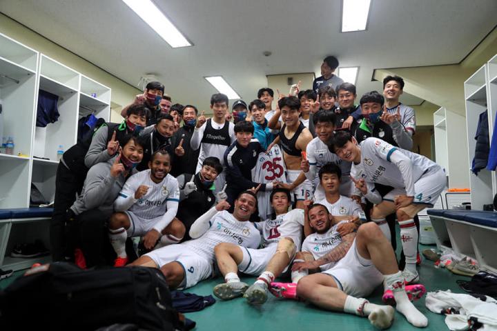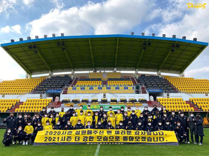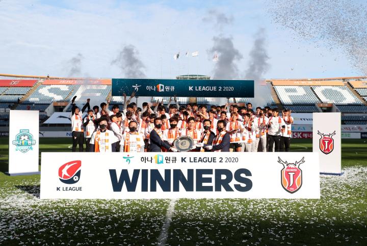 韩国足球新闻2020年即将过去,在年末之际,我们也对这一年的韩国足球进行梳理和回顾。这一年,是极其不平凡的一年,当世界面临百年未有之大变局的情况下,足球联赛也受到了很大的冲击,不仅仅是赛程方面,包括薪水方面等,都产生了影响。原定4回合的韩国足球K2联赛常规赛,最终因疫情影响削减为3回合,33场比赛下,很多慢热的球队失去了改变命运的机会,而那些进入角色快的球队,则利用这样的赛程完成了自己的目标。如果用一句话来总结这一年的K2联赛,那无疑是“黑马趁乱杀出,稳定压倒一切”。“黑马”自然指的是不被看好的水原FC,而“稳定”自然是济州联合。我们以从后往前分析各队的方式,带大家重新梳理一下这个纷繁复杂的赛季。