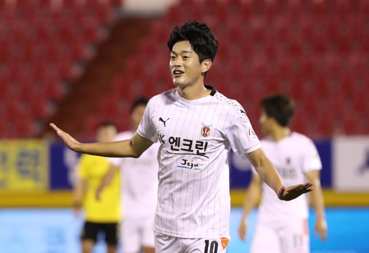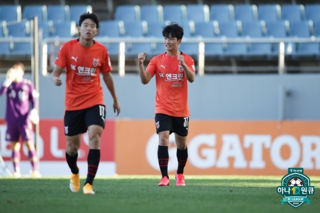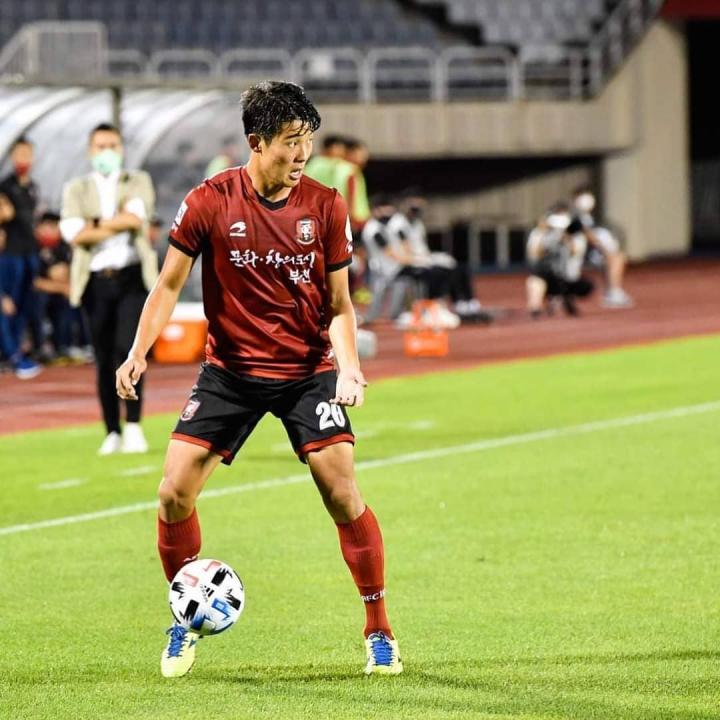 对于富川FC1995来说,他们这个赛季没有稳定的得分点,但防守依旧是他们的第一要务,在屡屡出现核心球员染红停赛后,有一位年轻球员脱颖而出,他就是被誉为富川最强U23的金江山。98年出生的金江山虽然是按照U22的球员的配备的,但他却在主力球员停赛后完成了合适的补位,本赛季金江山踢过中卫,也踢过防守型后腰,强硬的身体素质让他对抗上丝毫不占下风。在11月的埃及热身赛期间,金江山被选入了韩国国奥队,第一次披上了国字号的战袍。不出意外,明年的转会市场,金江山将是富川的“最大筹码”。
