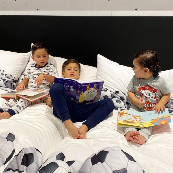 我喜欢和他们在一起,我喜欢他们让我踢足球或玩一些与运动有关的东西,我喜欢他们要求和我一起洗澡或到我床上睡觉,我喜欢和孩子们在一起的一切。我喜欢和他们相处。每天晚上他们都会出现在我们床上,蒂亚戈现在不了,马特奥有时不会,有时会直接来,西罗也是如此,有时我们五个人都睡在一张床上。