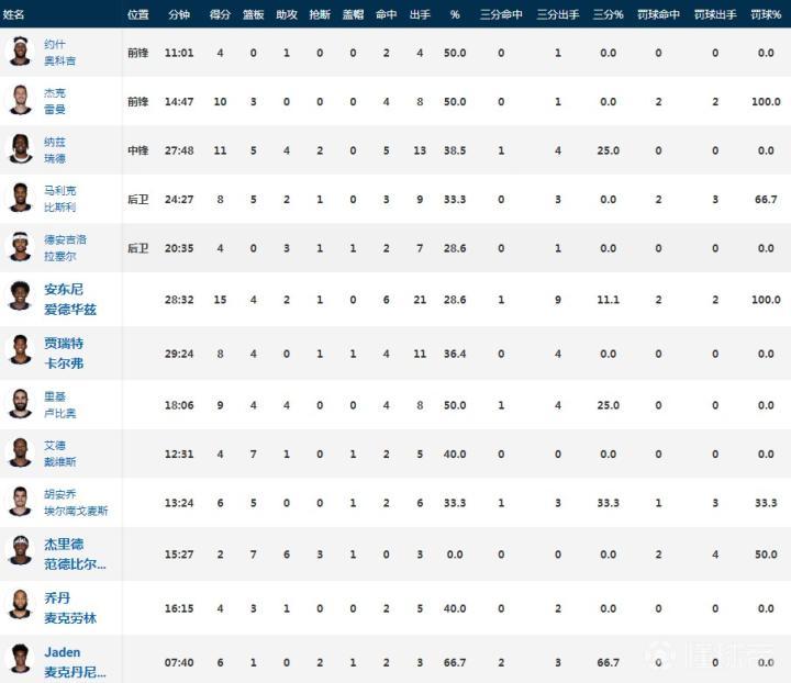 易边再战,施罗德追身半截篮率先命中,里德空位三分命中,詹姆斯坦克式上篮取分后背打卡尔弗强起打成2+1连拿5分,波普空切接球上篮也打成个2+1,小加索尔正面三分空心落袋后背打里德勾手打成2+1连下6分,詹姆斯快下双手暴扣虐筐,湖人多点开花逐渐将分差拉大至30分。随后小加索尔与霍顿-塔克相继命中三分,马修斯里突外投连续取分。湖人将分差拉大至36分进入末节争夺。