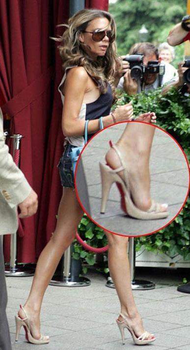 贝嫂维多利亚是出了名的喜欢穿高跟鞋,她的鞋子款式样子各有不同,但唯一的共同点就是都是高跟鞋,而且都是超高跟的。由于贝嫂钟爱高跟鞋,她的脚患有严重的拇外翻,据报道她已经做了3次拇外翻手术了。