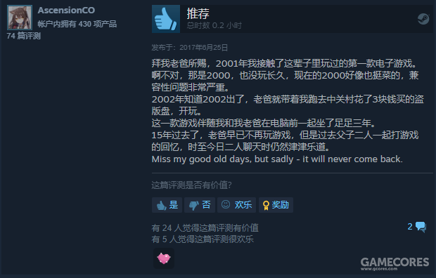 “你就在此地不要走动,看为父给你打两架飞机下来。”有多少玩家接触到这款游戏是被自己的老父亲领进门的呢?17年,系列的三部作品正式上架Steam之后,不少玩家纷纷补票,并在评论区回忆了当年与老爸一起玩抢滩登陆的情景。或许这就是最早的“父子局”?
