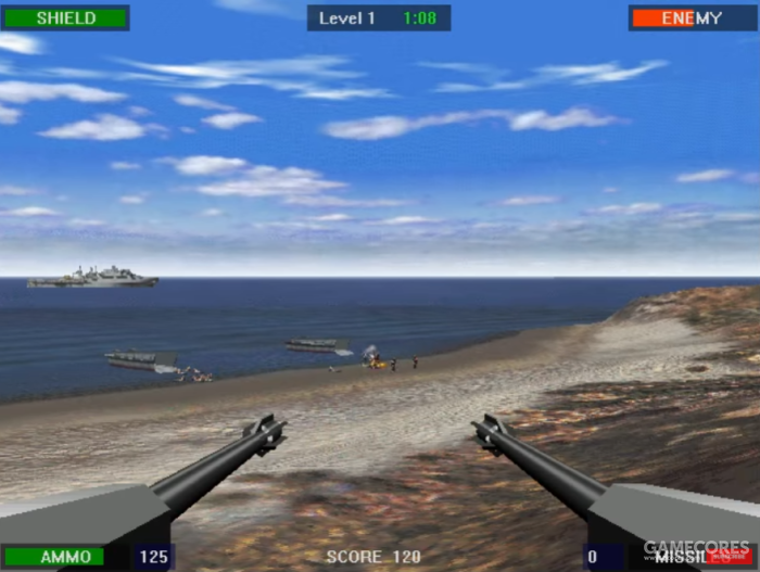 这款游戏中,玩家全程都在一个舰艇上,而你的敌人则主要是各种各样的飞机。由于出的年代相对晚一些,因此画面上比《太平洋枪手》和《抢滩登陆》都要好,被飞机轰炸的震动反馈也很有代入感。理所当然的,这款游戏就被盗版商包装为了《抢滩登陆2006》在国内进行售卖,甚至在汉化版中还特意把标题都改了,很多玩家到现在都不知道这款游戏的真名是什么。