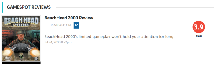 《抢滩登陆》的缺陷,早在15年前就已经有人提出了——“缺乏重复可玩性”。这样一款缺乏演出,缺乏深度,画面也算不得上乘的游戏别说放在现在,就是在当年,也入不了游戏媒体的法眼。Gamespot评测中就写了一段有些“残忍”的话,“如果你是个休闲游戏玩家,并且想稍微感受一下二战游戏的氛围,你或许可以享受这款游戏一段时间;除此之外,没人想为它浪费钱”。