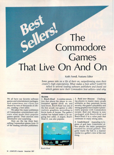 作为最早登陆这一平台的游戏之一,83版《抢滩登陆》自然也乘上了东风,成为了当时C64电脑上最畅销的游戏,卖出了近100万套。在专门报道C64电脑新闻的杂志《Compute!'s Gazette》87年的一篇游戏销量统计中,第一位就是83版《抢滩登陆》。