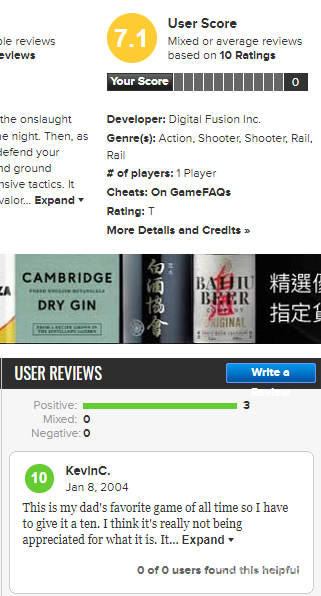然而和媒体评分形成鲜明对比的是,M站《抢滩登陆2002》的玩家评分竟然达到了7.1,考虑到它的质量和诚意,这已经可以算得上是高分了。在用户评论中,我们也可以看到一些老外给出这款游戏高分的原因——“这是我爸最喜欢的游戏”(This is my dad’s favorite game)。