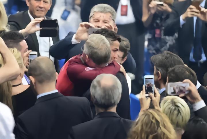2016年欧洲杯决赛,凭借埃德尔的绝杀进球,C罗赢得自己人生中第一个欧洲杯冠军。在赛后的颁奖典礼上,C罗还遇到了自己的恩师弗格森。