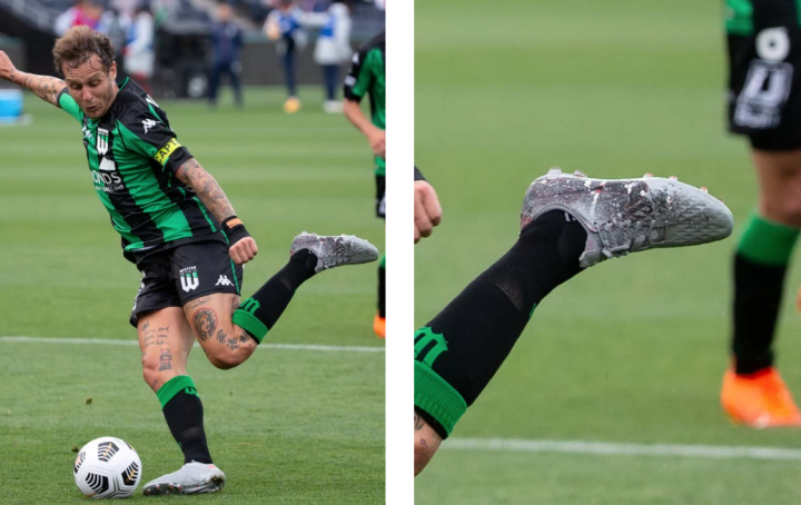 西部联在0-0战平阿德莱德的比赛中,我们看到了亮相于澳大利亚赛场的定制球鞋。亚历山德罗-迪亚曼蒂在比赛中穿上了不止一双,而是两双定制的Tiempo Legend VIII。