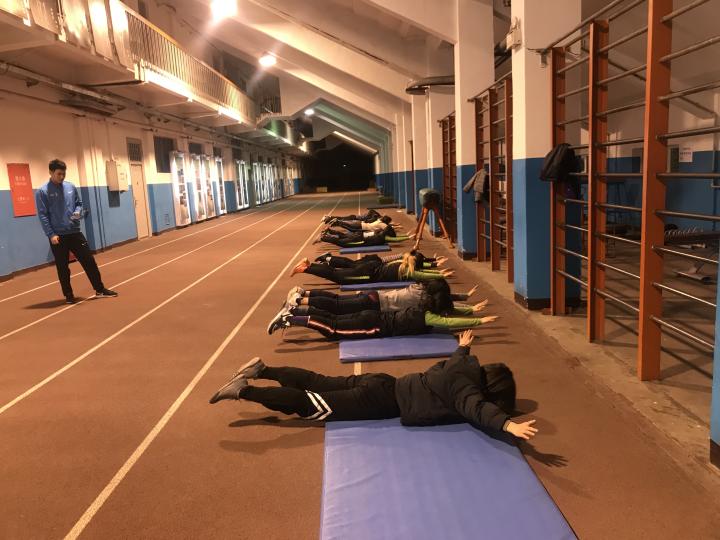 清华女足的日常训练分为晨训、午训和晚训三个部分。晚训是清华女足的常设训练,内容主要以传停带射的基本功和抢圈、对抗赛等内容为主,在备战期间会针对性演练进攻和防守套路,也会根据各个位置的队员需要掌握的技能来进行单独训练,比如前场小配合,后场头球和长传解围等。晨训开始于早上6:30,只要有队员报名,助理教练就会带着队员进行基本功练习,虽然是自主参加训练,但是一学期下来,除了周日休息之外,每天都有队员主动报名参训,特别是新加入的队员们,清晨练球热情高涨,基本功也在勤奋训练下快速长进。在备战比赛等特殊时期,球队也会根据需要来格外增加午训。此外,为了在场上能抢能拼,球队也会组织队员们进行力量训练。需要的时候,教练会组织队员们利用晚训或晚餐时间分析比赛录像,学习足球理论、战术,深入剖析球队出现的问题,平时也经常出现大家聚在一起边吃饭边讨论的场景。