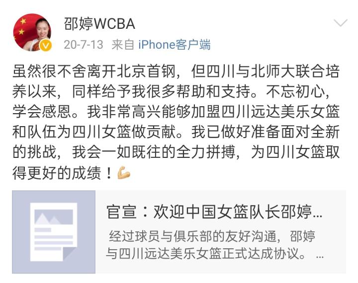 从最初CUBA赛场上创造无数历史的“学霸球员”,到北京队夺冠的功臣,再到中国女篮国家队的队长,再到如今加盟四川队,不断走出自己的舒适圈,邵婷的球员生涯总是充满了新的挑战,但她总是不畏惧这些挑战,而是选择直接面对并逐一战胜它们。正如邵婷自己所说,做好面对挑战的准备,一如既往全力拼搏。有这份精神的激励,相信邵婷的篮球生涯还会继续创造更多的不可思议!