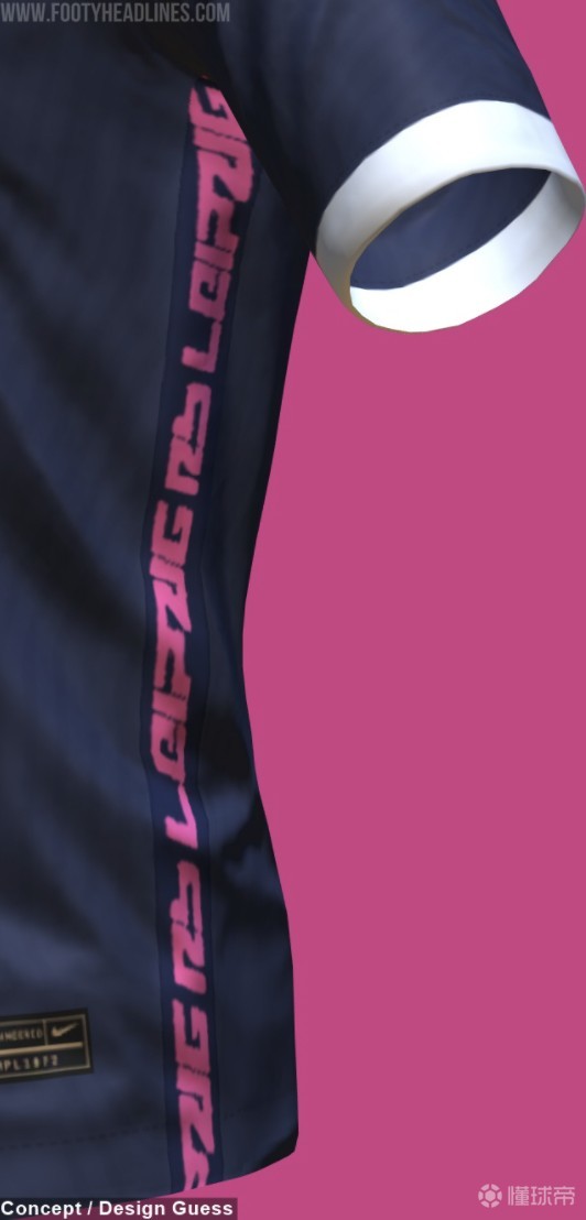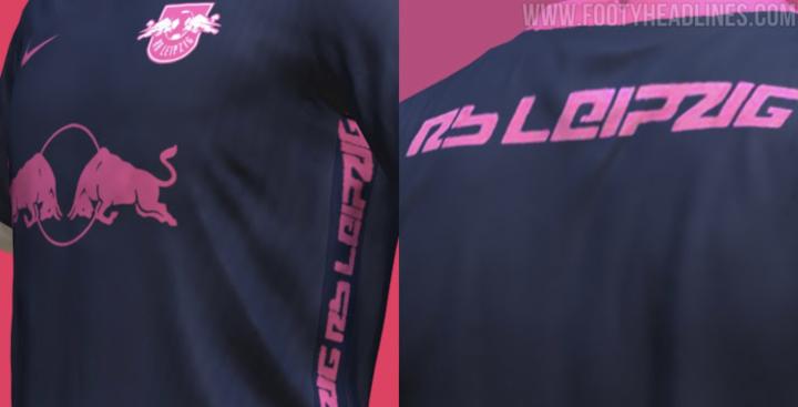 根据footy headlines曝光的谍照,这件第三球衣将采用午夜蓝色作为球衣的基础色,球衣赞助商Nike的logo和莱比锡的队徽则都将采用鲜艳的粉色进行搭配。